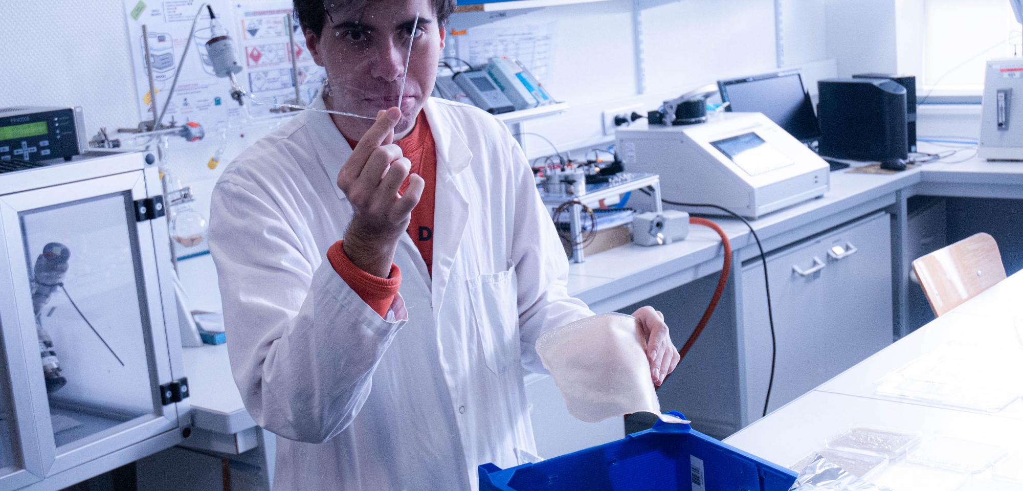 Son défi est de créer une fine couche à appliquer sur les emballages pour les rendre plus imperméables. Pour cela, il a cherché des ingrédients naturels pour fabriquer des plastiques biodégradables. Comme les entreprises alimentaires méditerranéennes ne recyclent pas les restes de poisson, il a eu l’idée de les utiliser comme matière première naturelle.